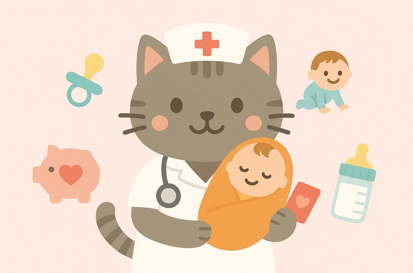 ねこ「2025年4月スタートの『出生後休業支援給付金』で、“産後すぐの育休”が少し手厚くなるですぞ🐾」